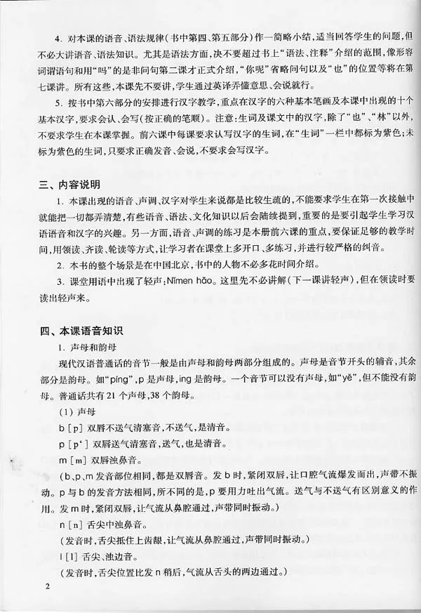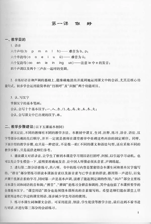 Instructor’s Manual: The Instructor’s Manual makes suggestions regarding the goals and methods of teaching and supplies explanations of each lesson’s contents. It also supplies the instructors with more knowledge about phonetics, grammar and vocabulary. Each volume has two sets of unit tests. Keys to the tests and exercises are also provided.
