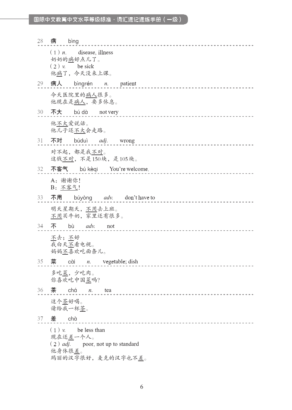 Chinese Proficiency Grading Standards for International Chinese Language Education: Quick Vocabulary Handbook, a practical vocabulary-learning manual for Chinese language learners, is compiled in strict accordance with the “List of Chinese Vocabulary” in Chinese Proficiency Grading Standards for International Chinese Language Education.