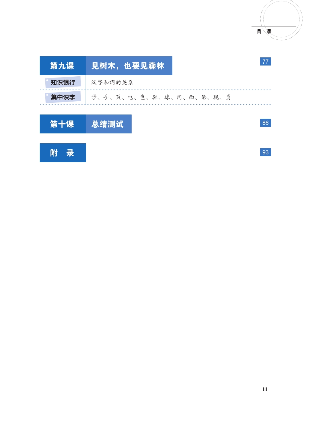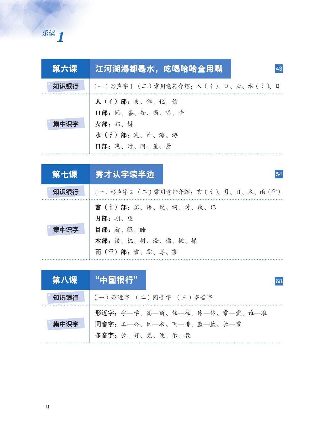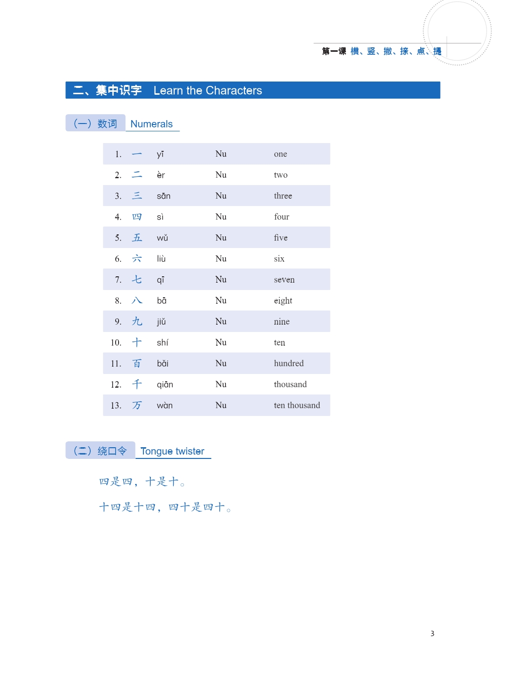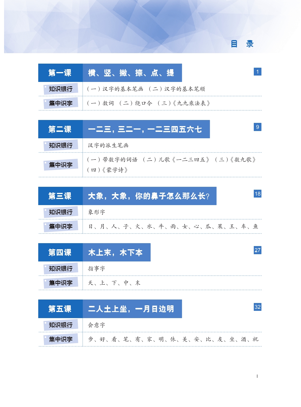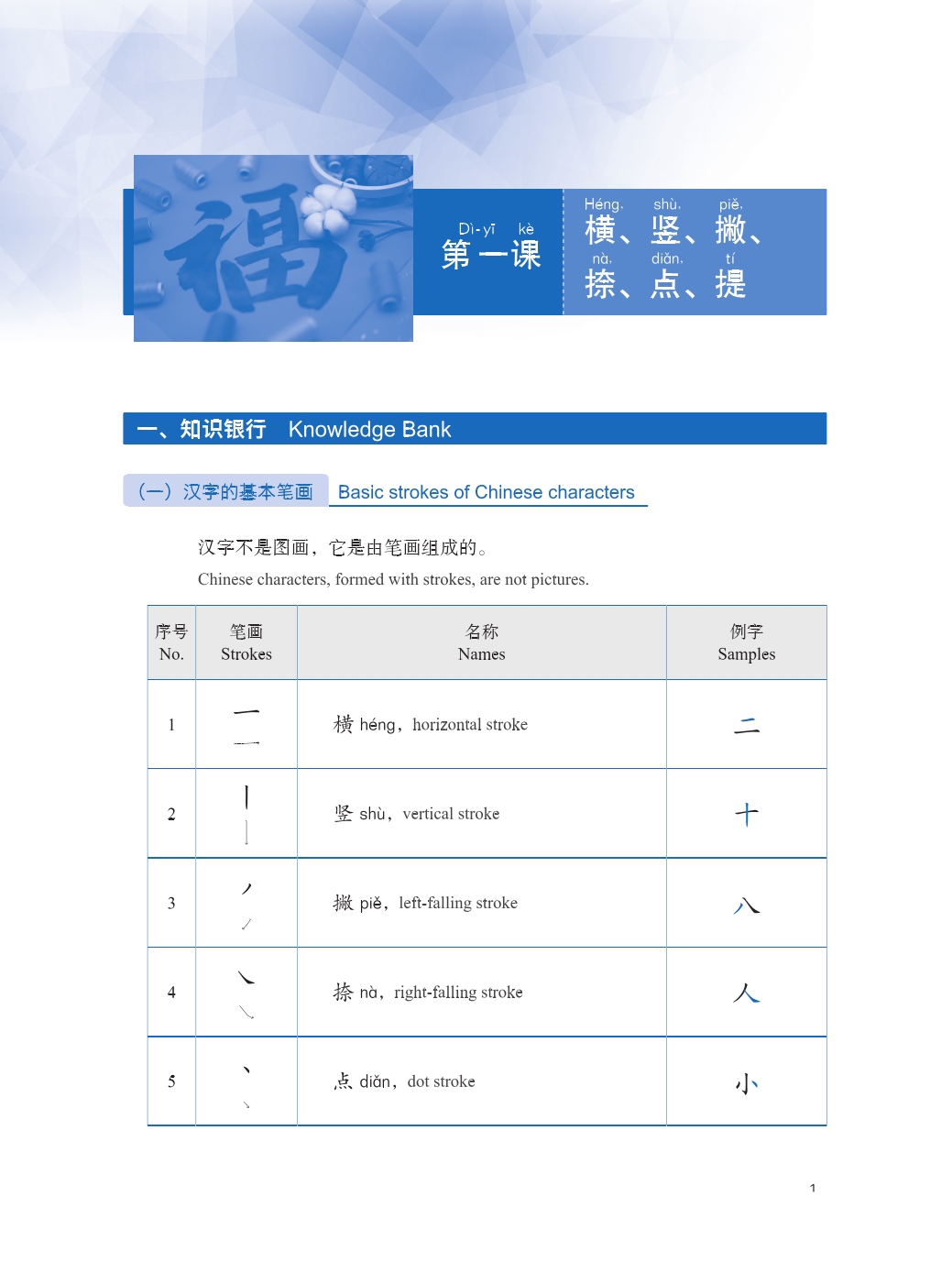 It is for both classroom use and self teaching. The recommended teaching time for each lesson is 2-4 class hours. This volume aims to develop students’ interest in reading and train their reading skills. It starts with the strokes of Chinese characters, concentrates on studying characters and enlarges vocabulary through the connection of semantic components, and then consolidates new words by reading sentences and paragraphs.