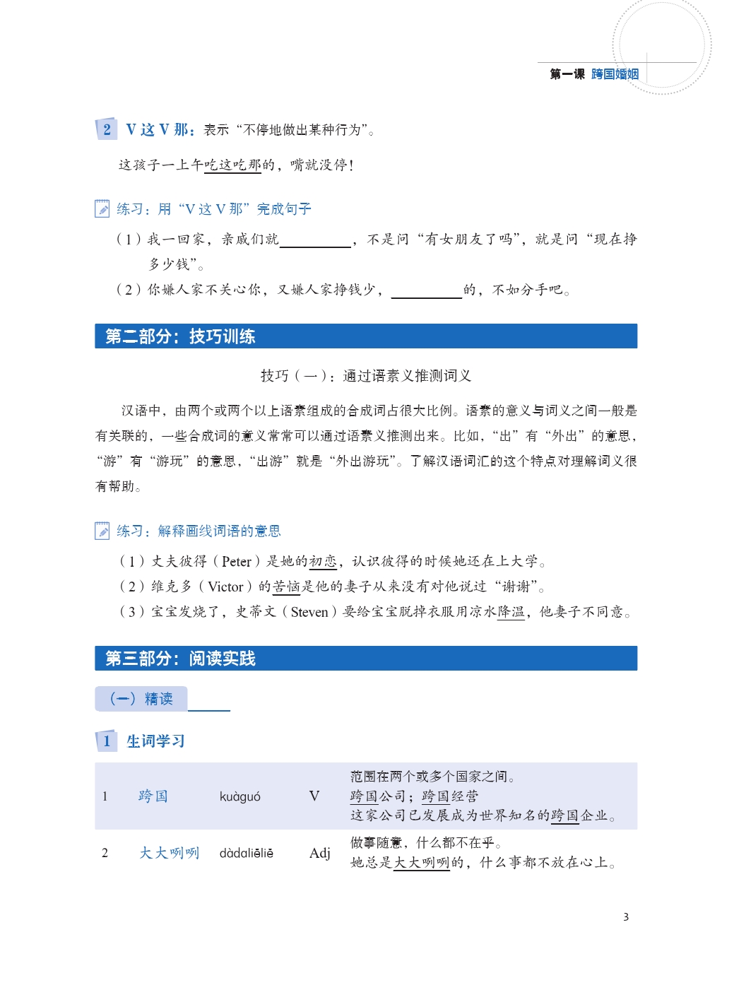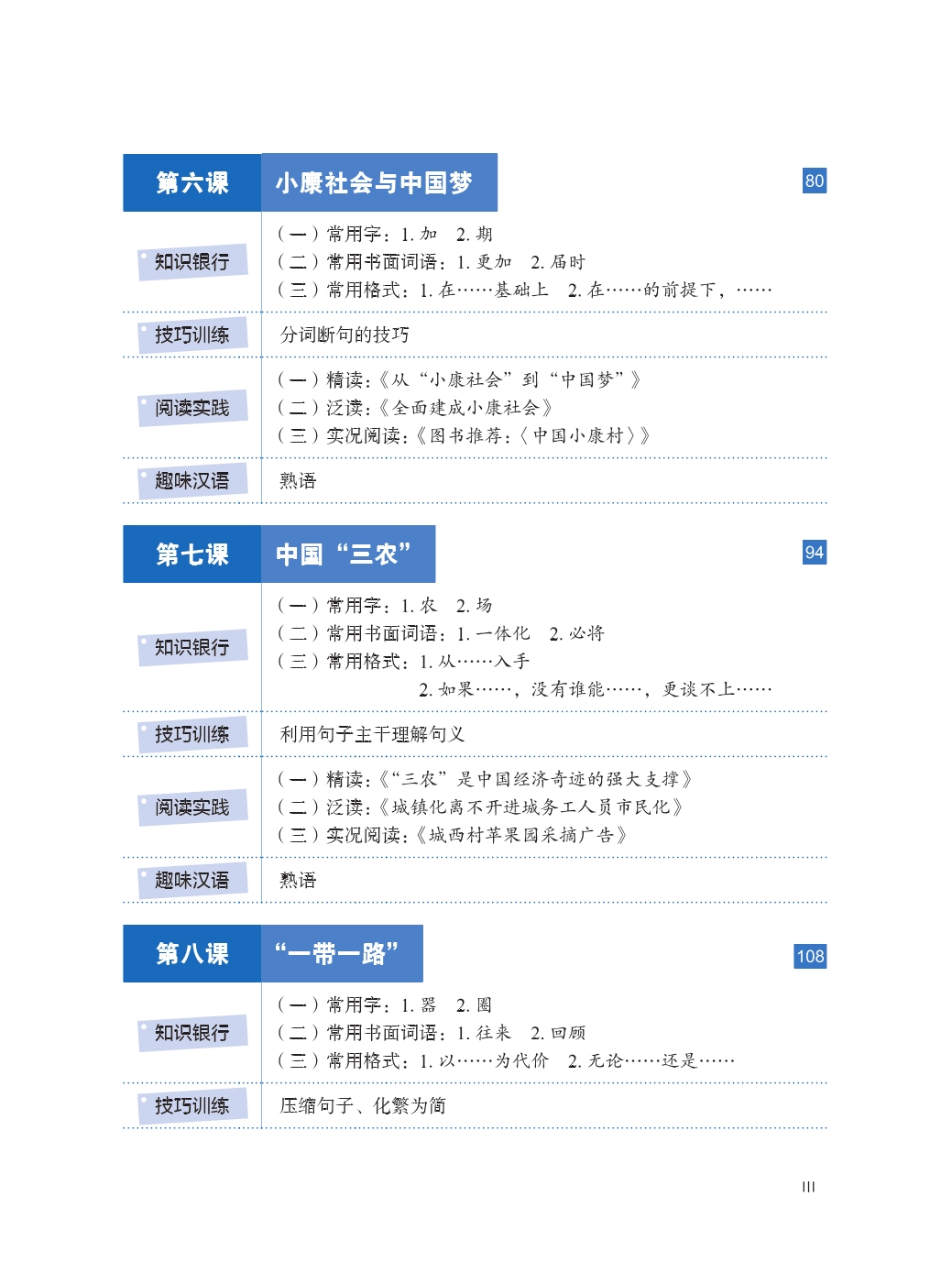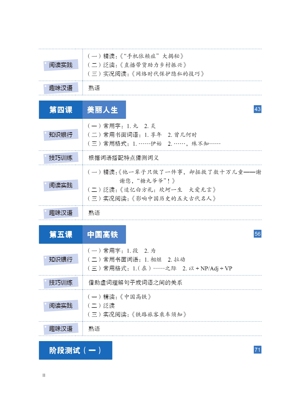 Targeted at the training of reading skills of Chinese learners, this book is designed and compiled for the difficulties in Chinese reading for Chinese learners and the need to improve their reading skills, highlighting the characteristics of reading textbooks, and helping students improve their Chinese reading skills through specific training. It provides abundant useful learning and practice materials to improve learners' reading skills and develop teachers' reading skills training.