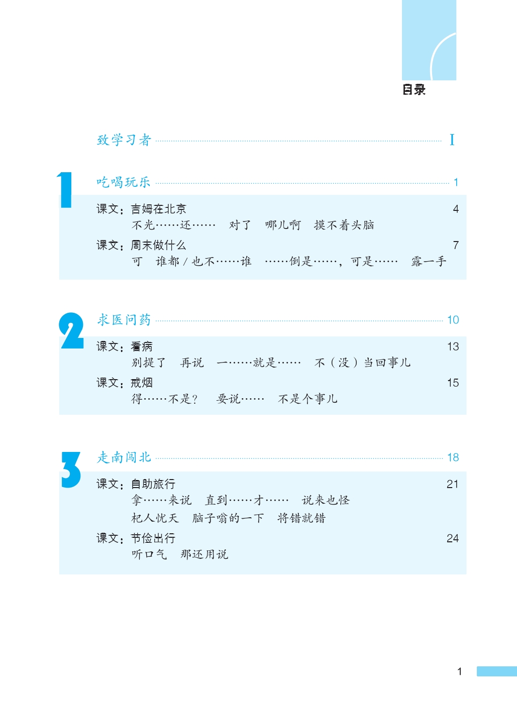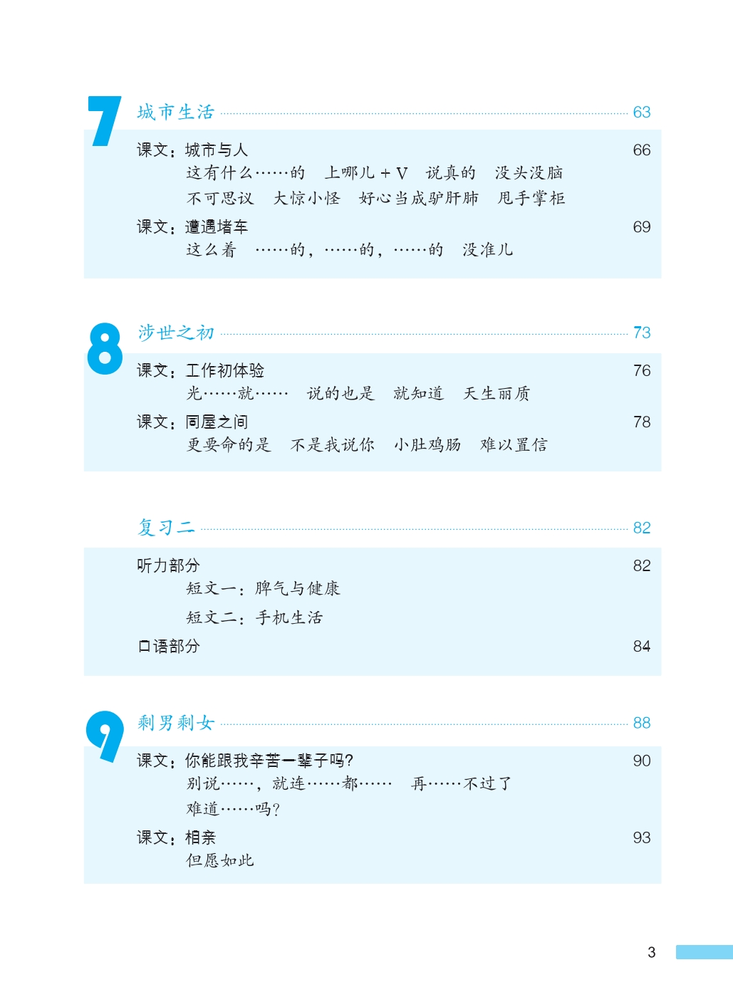 This is the first volume of Lower Intermediate. Its contents involve many aspects, such as family life, facing the frustrations, wild animal protection, neighborhood relationship, burdens for primary school students and economic life etc. The students can learn over 300 new words, 51 key words or grammar, 26 commonly-used morphemes and over 100 relevant words, 25 sets of synonym discriminations and nearly 20 idioms.