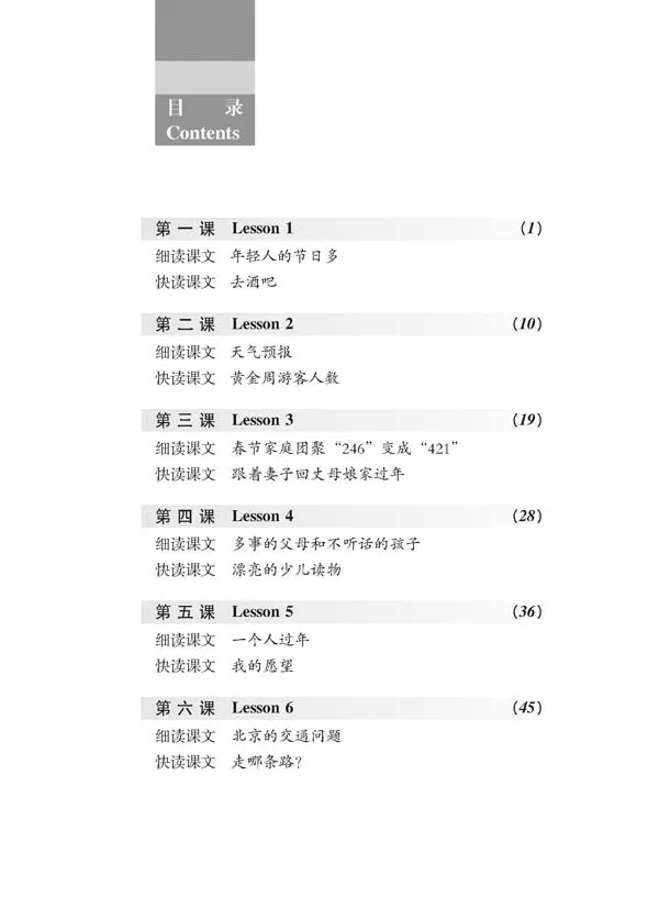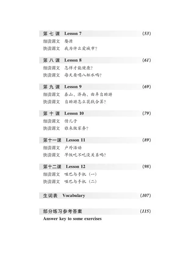 Topics and functional language elements closely related to students' daily life, study and social communication is selected to enable the instant feedback of learning in each unit. Compared with the other textbooks, it provides more language input, faster progress and ampler exercises.