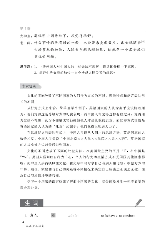 has been well-received by teachers and learners home and abroad and has become the best-selling textbook for short-term training of spoken Chinese. The compilers have made revision to the contents, replacing out-of-date texts according to social development to keep it timely and realistic since 2005. At the same time, some language points are also adjusted according to the feedbacks from years of classroom teaching. The layout is also improved to be more user-friendly.