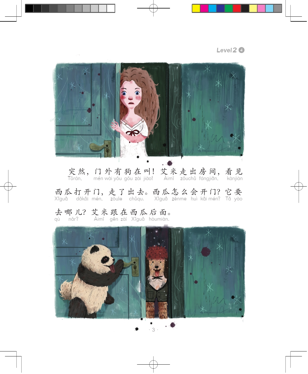 It was already 2 am at night, but Amy didn't want to go to sleep. She heard a dog barking out of the door. She saw her dog Xigua went out with Miss Wan's dog, Caesar. What were they doing? Amy followed them and went out …