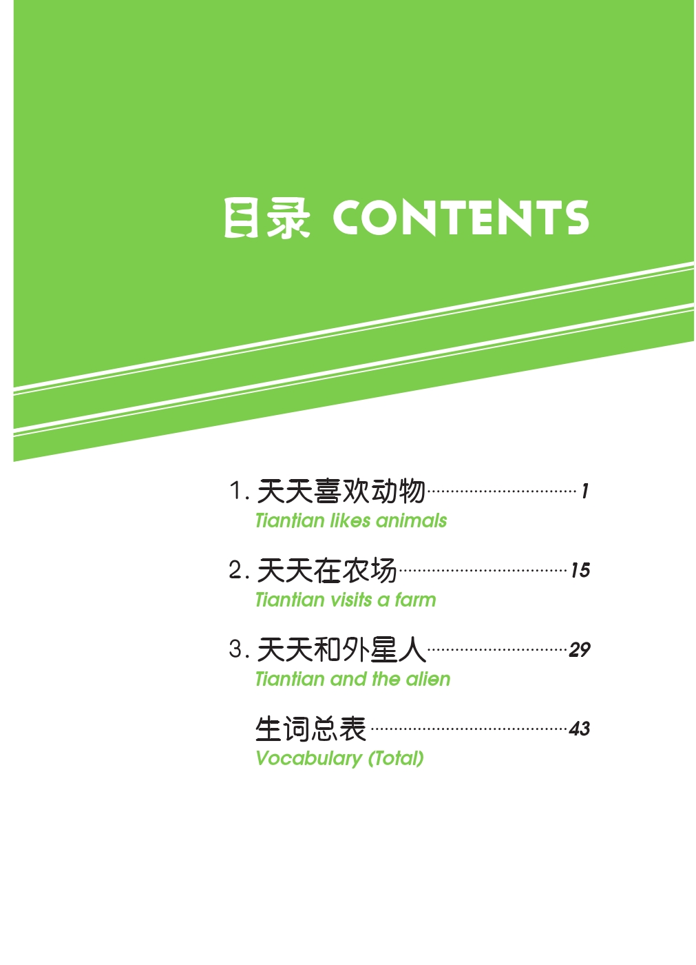 The Stories of Tiantianis a series of readers matching Textbooks 1-4 ofEasy Steps to Chinese. For each of the four levels, there are five readers, each telling three stories, matching the three lessons in each unit ofEasy Steps to Chinese. The readers describe the adventures of a secondary school student called Tiantian.