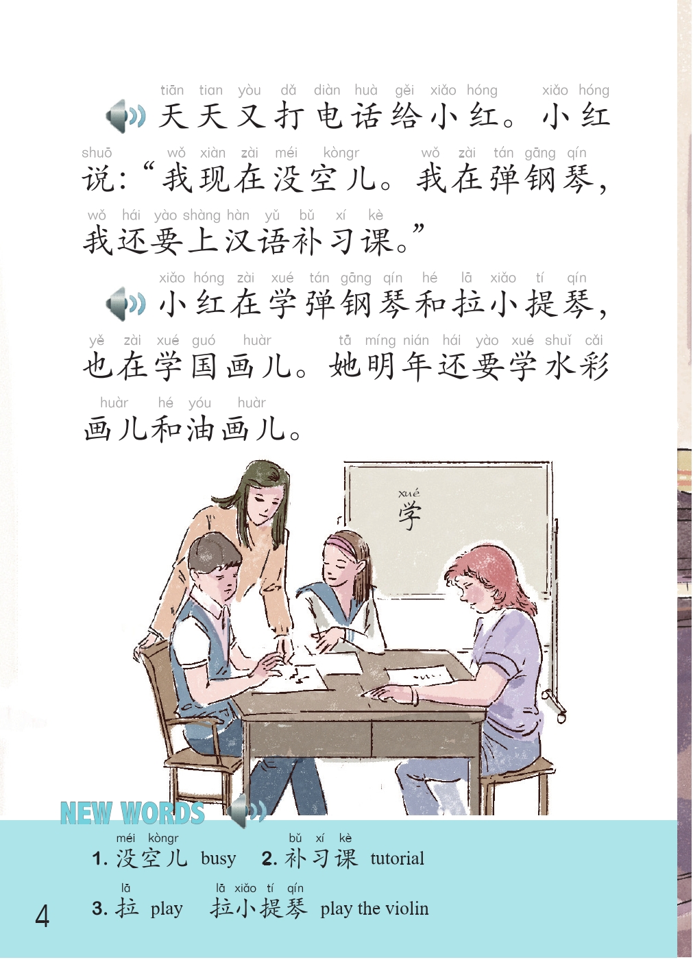 The Stories of Tiantian is a series of readers matching Textbooks 1-4 ofEasy Steps to Chinese. For each of the four levels, there are five readers, each telling three stories, matching the three lessons in each unit ofEasy Steps to Chinese. The readers describe the adventures of a secondary school student called Tiantian.