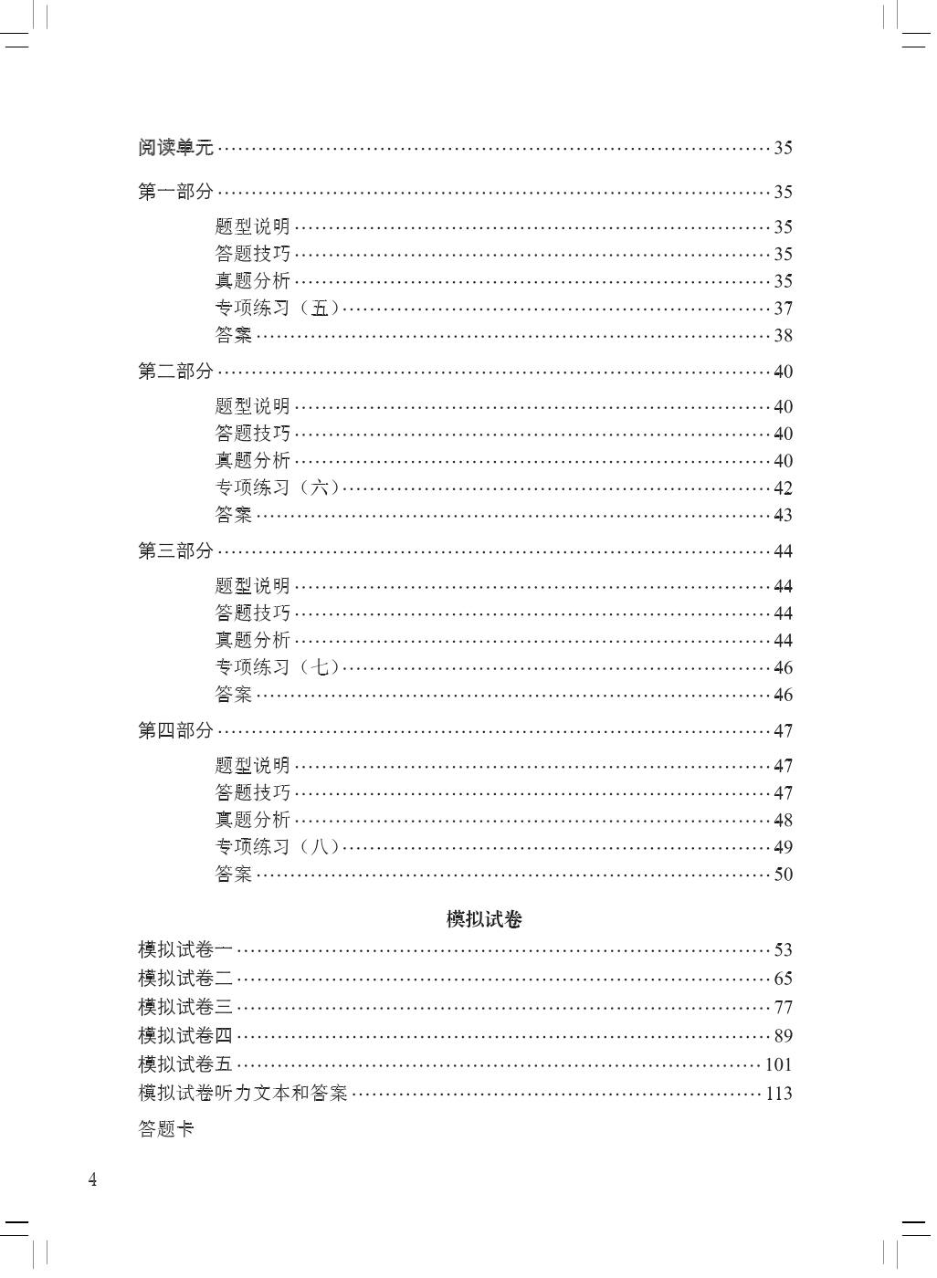 This series, based on a thorough investigation into the examination syllabus and the past examination papers, summarizes the language points and analyzes the types of questions. It focuses on the recurrence of high-frequency words, without neglecting words not listed in the examination syllabus. The combination of training and testing improves not only the candidates’ language proficiency, but also their test-taking skills.