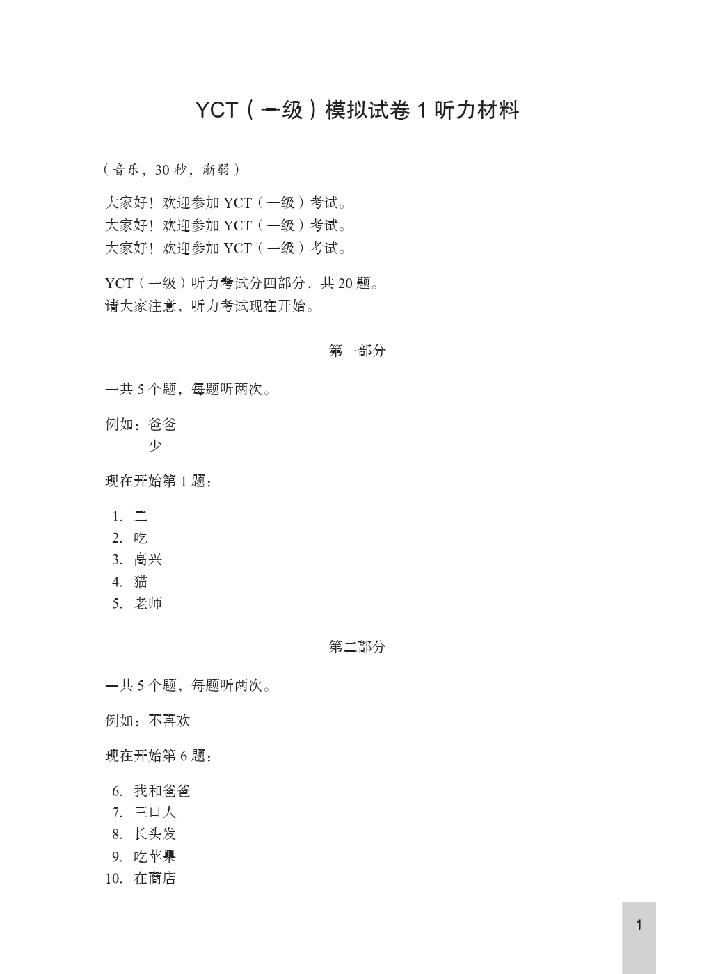 Yct Simulation Tests Level 1 Learn Chinese Hanyu Pinyin Kids Book