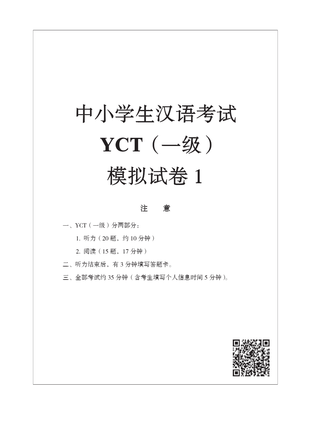YCT Simulation Tests (LevelⅠ) is corresponding to the writing tests of YCT LevelⅠ, including 6 sets of simulation tests.