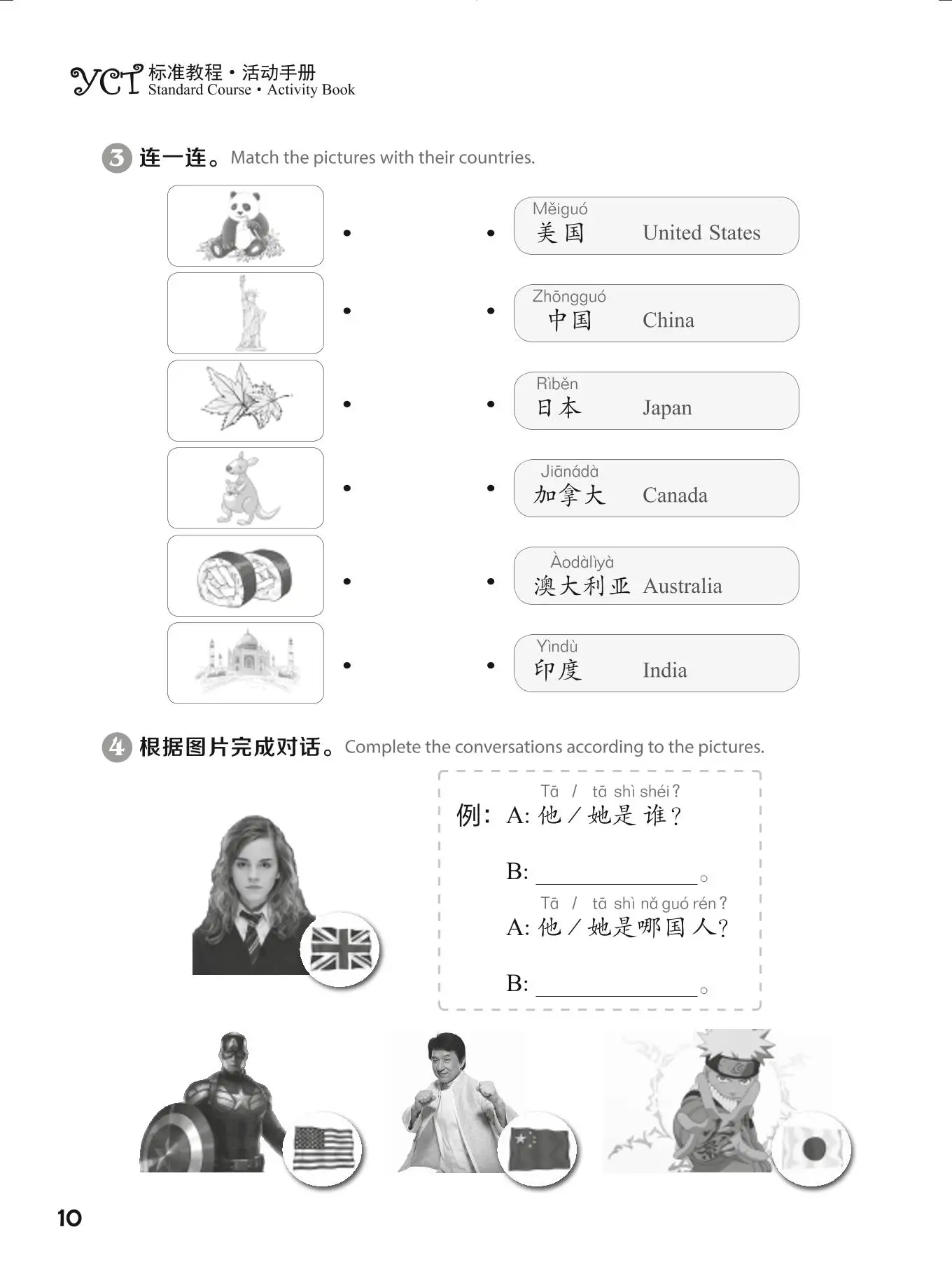 YCT Standard Course Activity Book 1 Learn Chinese Hanyu Pinyin Kids
